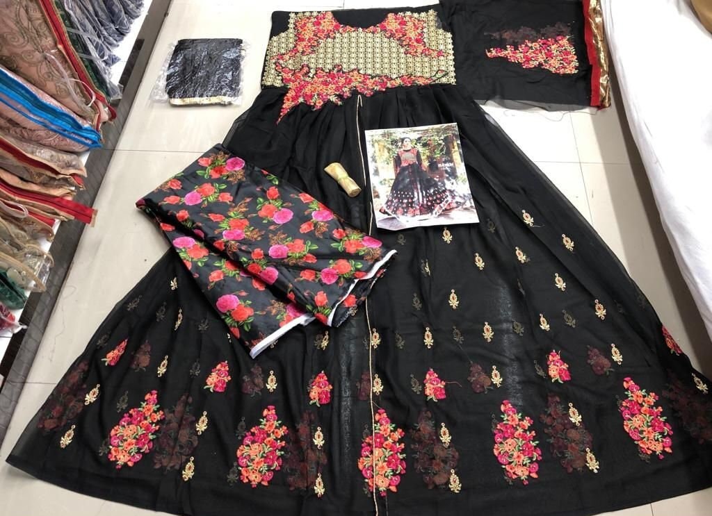Black Anarkali Full Embroidery Gown With Duppata Chikankari Etsy Singapore
